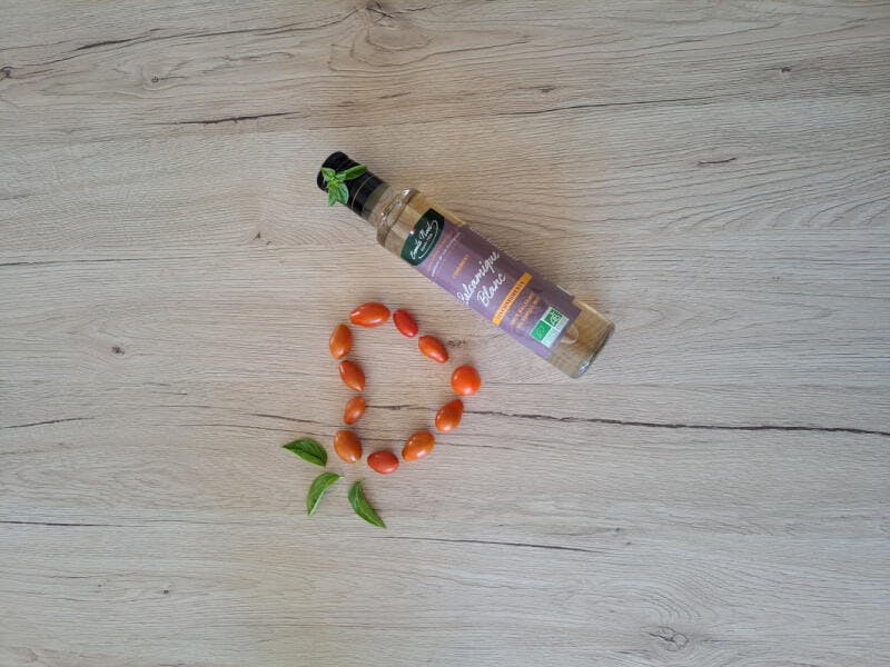 Notre condiment au vinaigre balsamique blanc bio se distingue par sa douceur équilibrée et son acidité légère. Polyvalent, il s’intègre parfaitement aux salades, marinades ou autres préparations froides.